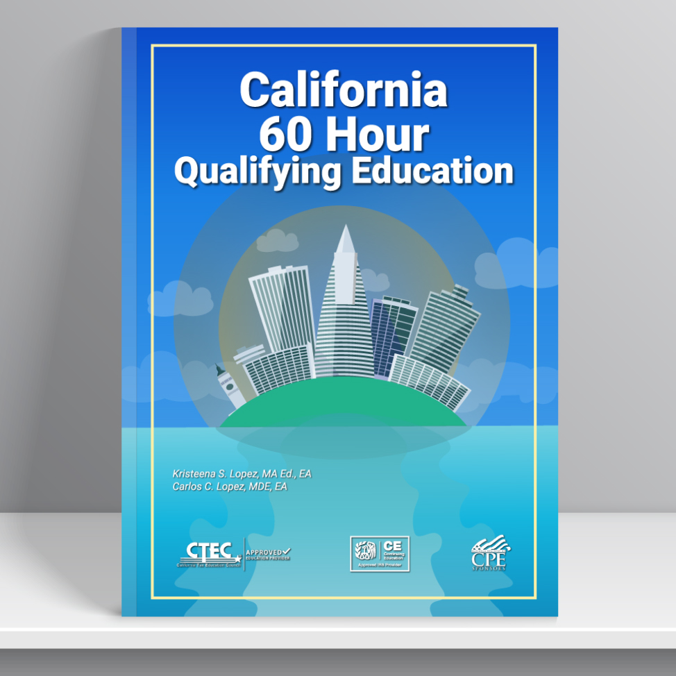 This course meets the 60-hour Qualifying Education requirement (45 hours of Federal Tax Law, which includes the required 2 hours of Ethics and 15 hours of California Tax Law) imposed by the state of California to become a California Registered Tax Preparer (CRTP).